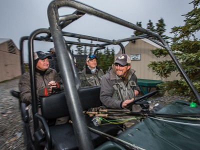 While guests are gearing up for the day, the kitchen crew packs coolers for lunches which include deli-style sandwiches, chips, cookies and fruit. We always include a thermos of coffee, thermos of soup, water bottles and soda. Hot shore lunches are also an option, with fresh caught fish prepared stream-side. With your waders on, rain coat, sunglasses, camera and lucky fishing hat, you are ready to depart our Alaska fly fishing lodge for the day’s adventure.